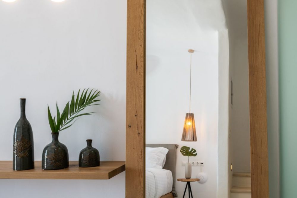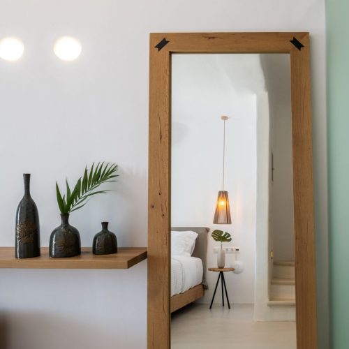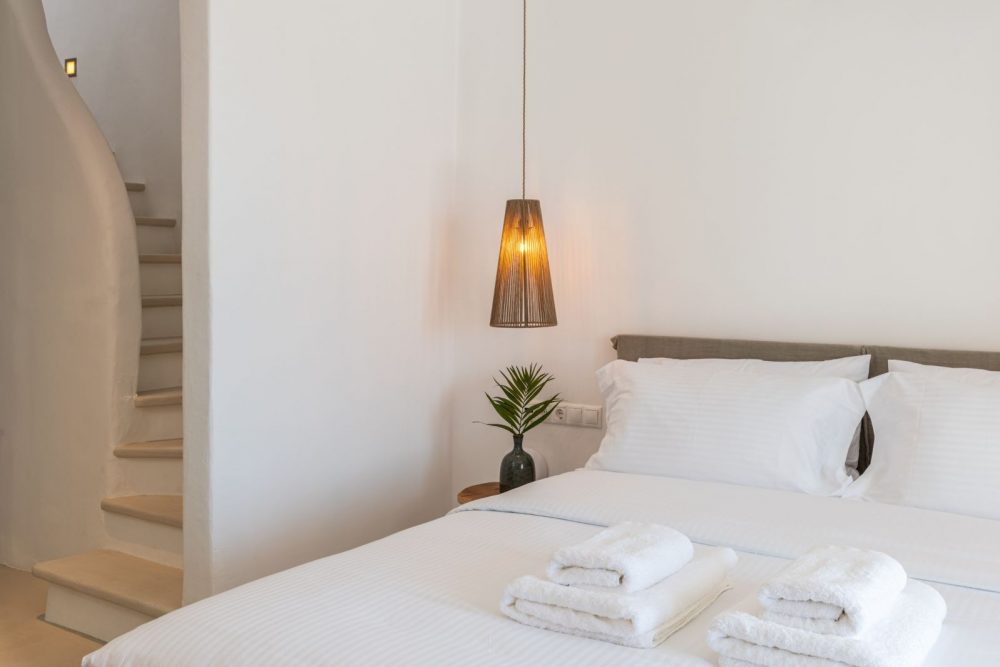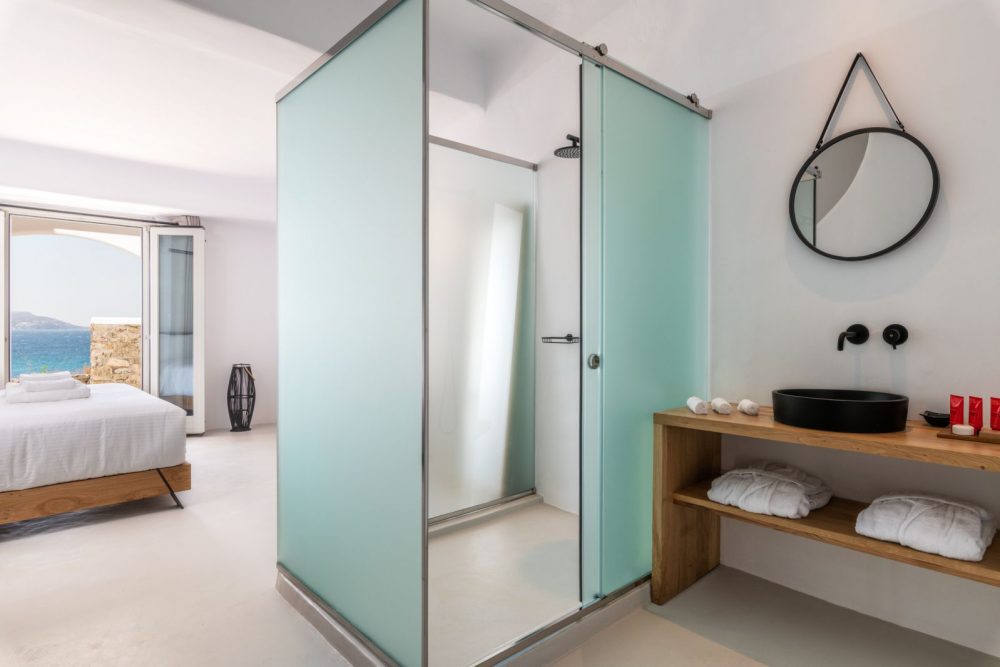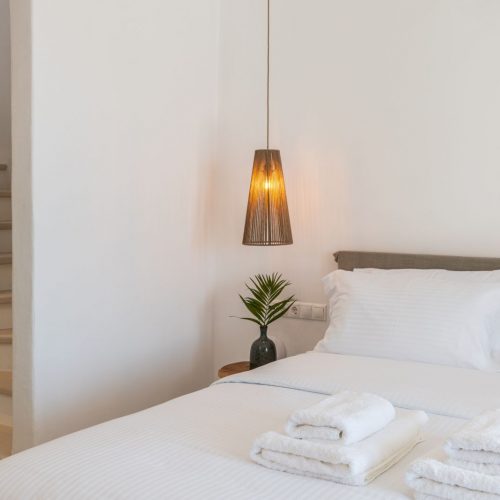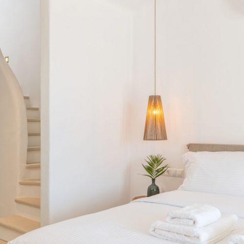 The clean lines of Cyclades, the earthy shades, the use of cement mortar and the ingenuous decorative elements set the profile of a microcosm of harmony and effortless luxury, infused in the island culture and a cozy ambiance, while the natural light that is freely shed in all spaces accents the feeling of wellness and optimizes the aesthetic result. Comfortable beds with quality mattresses for a top sleep experience, elegant furniture and modern amenities in every room for the ultimate convenience form the background of your dream stay in Mykonos. Add to these features of Obsession Mykonos unobstructed views, reaching the bay of Chora, sea breezes and sense of freedom, and what you get is an all-inclusive package of magic moments and unforgettable delights!